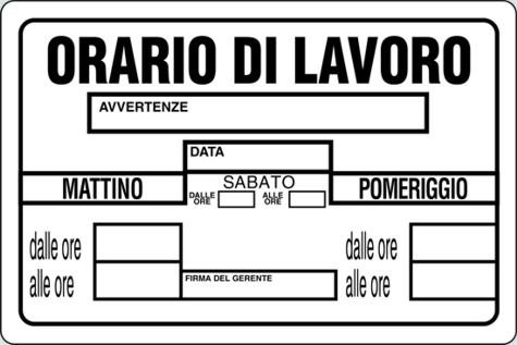 CARTELLI PLAST.ORARIO LAVORO CM 20X30
