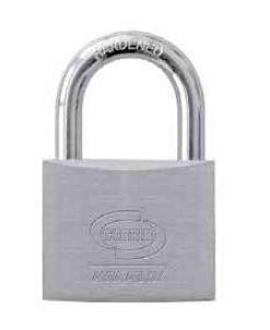 Corpo in ottone cromato lucido - arco in ottone cromato lucido con anello in gomma per proteggere meccanismi interni - 2 chiavi in dotazione - doppio sistema di chiusura per lucchetti con corpo maggiore di 30 mm - spina anti grimaldello per lucchetti con