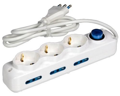 Multipresa MAURER a 3 + 6 uscite 3 prese frontali 2P + T 16 A bipasso + Schuko 6 prese laterali 2P + T 16 A bipasso spina 2P + T 16 A cavo mt 1,5 - sezione 3x1 - con interruttore