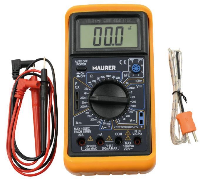 Funzioni: 10 - Misurazioni in corrente + e - su display: 19 - Tensione massima: 500 V - Precisione misura tensione: +- 0,5 - Dimensioni LCD: 63x27 mm - Max display: 1999 - Alimentazione batteria 9 V inclusa - Misura della tensione, corrente, resistenza, t