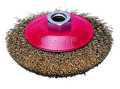 SPAZZOLA INDUSTRIALE CONICA FILO ACCIAIO ONDULATO mm 0,30 FORO FILETTATO MA 14
